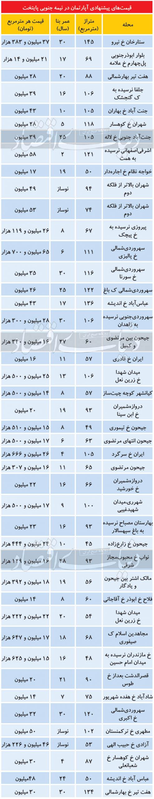 البته قیمتهای پیشنهادی کمتر از میانگین قیمتی مناطق بیستودوگانه، در بسیاری از محلات واقع در نیمهجنوبی وجود دارد و آنچه در این گزارش مورد بررسی قرار گرفته، واحدهای مسکونی نزدیک به میانگین قیمت آپارتمان در تهران است.